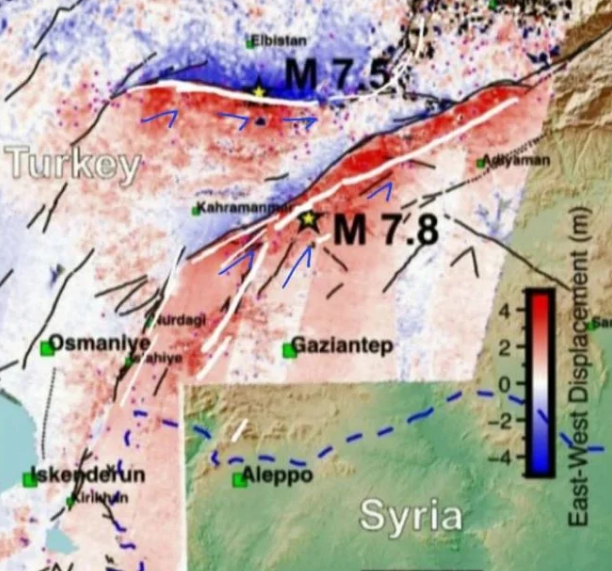 Prof. Dr. Şener Üşümezsoy, Malatya'daki deprem hakkında şu değerlendirmelerde bulundu: Bu gece Malatya'da olan depremin ş-ddet dağılımına baktığımız zaman sarı noktalar 6-7 arası ş-ddeti yeşiller ise 6'lık ş-ddeti göstermektedir. Bu boyutuyla ş-ddet fay hattı boyunca uzanmaktadır. Haritaya baktığımızda Kozan'da olan depremin artçıları Kozan, Göksun ve Çardak hattından Malatya'ya doğru giden hat boyundadır. Bunun iki ucunda Yeşilyurt'ta ve Ceyhan fayında kırılmamış bölümler stres yüklenmiştir. Bu mavi ve kırmızı renklerin olduğu haritada 6 şubat depremlerinde kırılan faylardaki stres boşalımı mor renkle gösterilmiştir.
