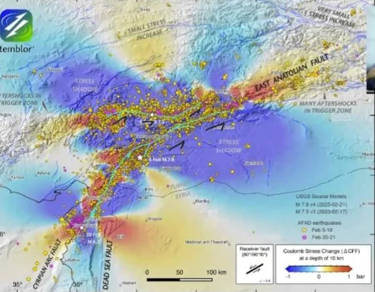 6 Şubat'taki kırılmaya baktığımız zaman Arap plakası kırmızı ile gösterilen şekilde 8- 10 metre kadar doğuya hareket etmiş ve bu Pazarcık depremiyle oluşmuş yapı diğer taraftaysa Elbistan bloğu çökmüş 8 -10 metre kadar ve bunun güneyindeki Engizek bloğu Maraş'ın kuzeyi ise doğuya doğru hareket etmiştir bu hareket sonucu Yeşilyurt'ta ve kırılan Çardak fayı güneye dönerek Göksun ve Ceyhan hattına doğru stres yüklemiştir.